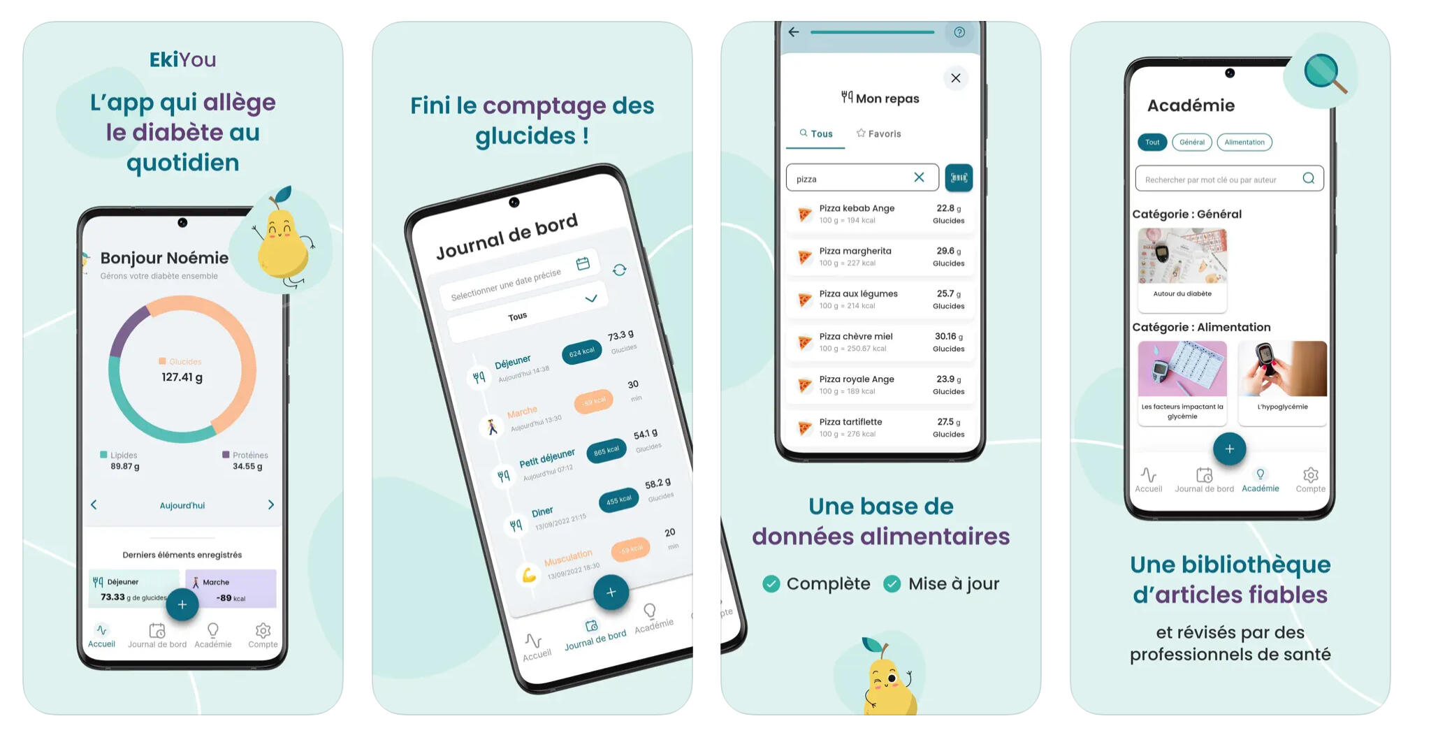 With EkiYou, enjoy your meal and physical activity without worrying about carbs! EkiYou has been developed to help lighten your daily routine and to help better understand type 1 diabetes.